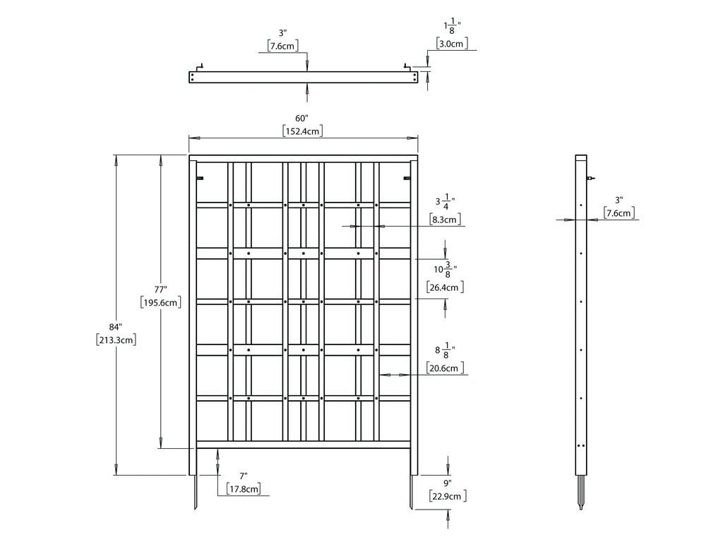 • Dimensions: 60"L x 3"W x 84"H (152 cm x 7.6 cm x 213.3 cm)